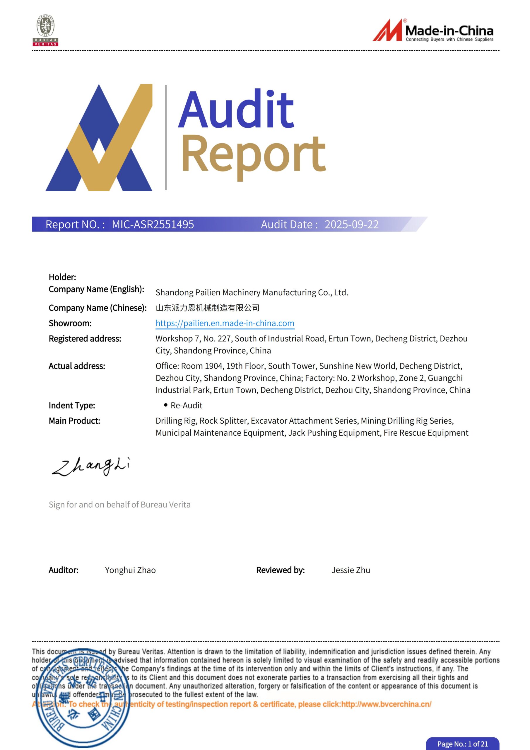 We are a Certified Supplier on Made-in-China.com, which verifies our legal business status and operational authenticity.
